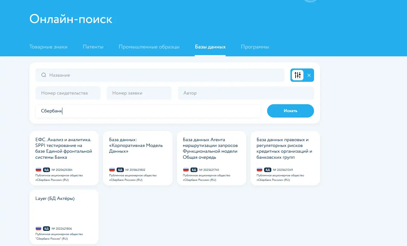 Оформленные в Роспатенте базы данных можно искать двумя путями: первый — через портал «Онлайн Патент»; второй — на сайте Федерального института промышленной собственности.