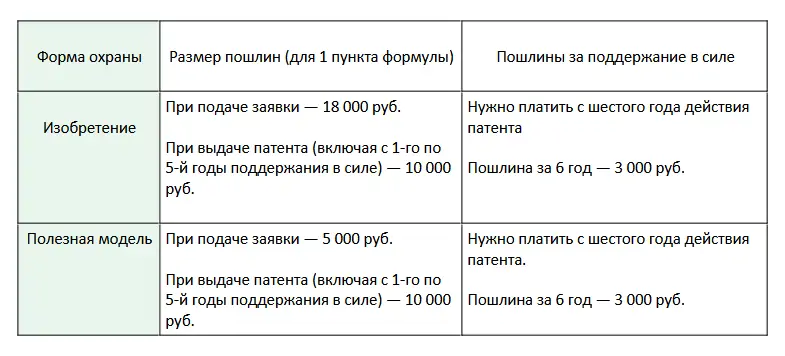 Пошлины при регистрации изобретений и полезных моделей