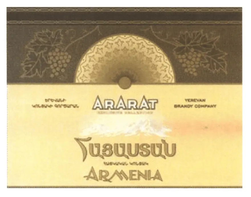 Бренд «Ереванского коньячного завода». Товарный знак включает в себя: латиницу, слова на армянском языке и изобразительные элементы.