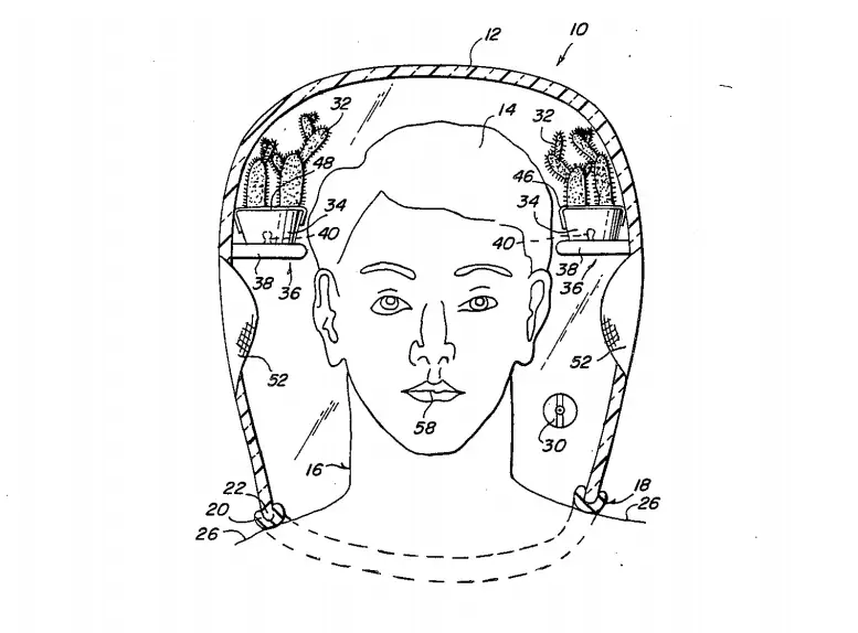 Вальдемар Ангита придумал шлем-теплицу. Такое приспособление могли бы оценить жители мегаполисов, у которых нет возможности часто выбираться на природу. Устройство позволяет дышать кислородом, выделяемым растениями, которые находились внутри шлема. Если верить описанию, портативный флорариум никак не влиял на качество общения с окружающими, так как он оборудован микрофоном и динамиками.