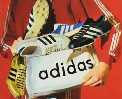 Помимо обуви с 1952 года компания начинает выпускать и другие товары под маркой Adidas: спортивные сумки, а позже и одежду. В 1971 году на лого с трем полоскам добавился трилистник. Символ того, что фирма работает в разных направлениях, а также на трех континентах. В 1972 году Adidas стал поставщиком олимпийской экипировки для спортсменов советской сборной, а СССР приобрело право на производство фирменных бутсов. Свои товарные знаки немецкая компания зарегистрировала в Советском Союзе значительно раньше.