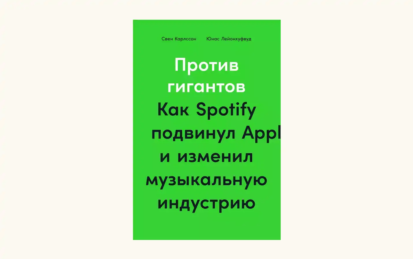 Книга для тех, кто горячо любит Spotify и хочет разобраться с тем, как неизвестный стартап из Швеции однажды заставил публику платить за музыку ежемесячно. Написана она без согласия Даниэля Эка — основателя. В ней вы не встретите ни одного его комментария. Авторы — Юнас Лейонхуфвуд и Свен Карлссон — взяли на себя ответственность рассказать о музыкальном рынке, его игроках, конкуренции и том, как альтернативные площадки стали защитой музыкантов от пиратского распространения их творений. По крайней мере, в определенной степени.