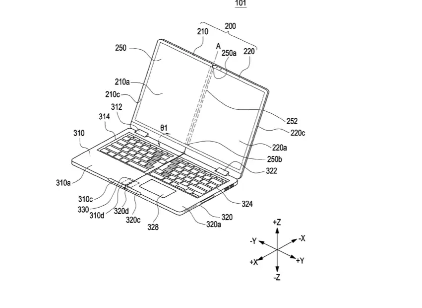 Из патентных изображений следует, что речь идет о ноутбуке, каждая из частей которого — экран и клавиатура — может складываться пополам. Конструкция предусматривает возможность отсоединения дисплея от блока с клавиатурой. Это позволит использовать экран как планшет.
